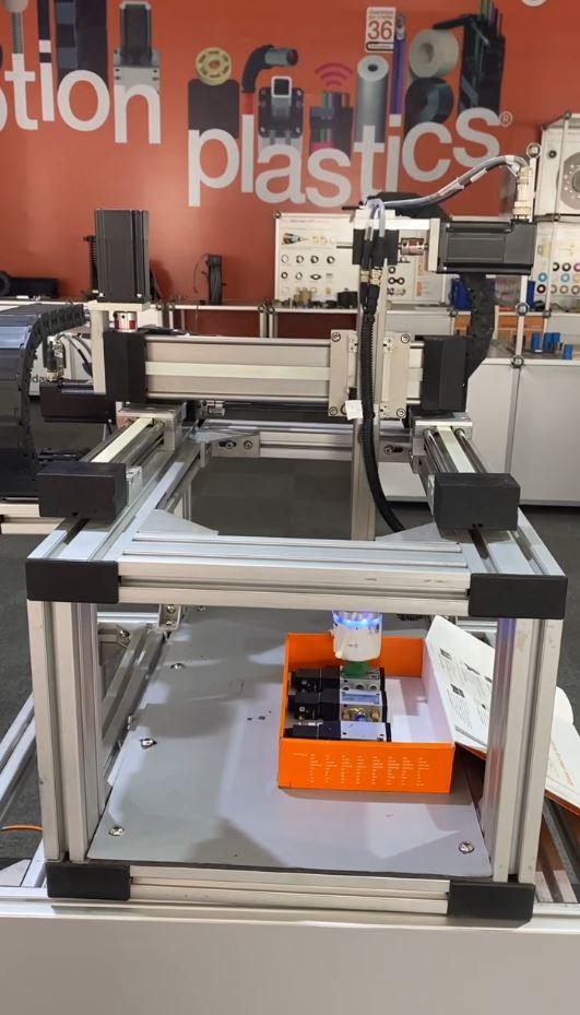 For industries working with pneumatic cylinders, solenoid valves, and accessories, automating repetitive tasks like pick-and-place is critical for improving productivity and efficiency. In this customer simulation, an igus gantry system equipped with a Schmalz Cobot pump replaces manual handling. The setup achieves up to 12 picks/min, with a repeat accuracy of 0.8 mm and a payload capacity of 2.5 kg on the gantry. The Cobot pump generates a vacuum of up to -600 bar, enabling secure handling of small parts up to 3 kg, making it ideal for precise automated processes.